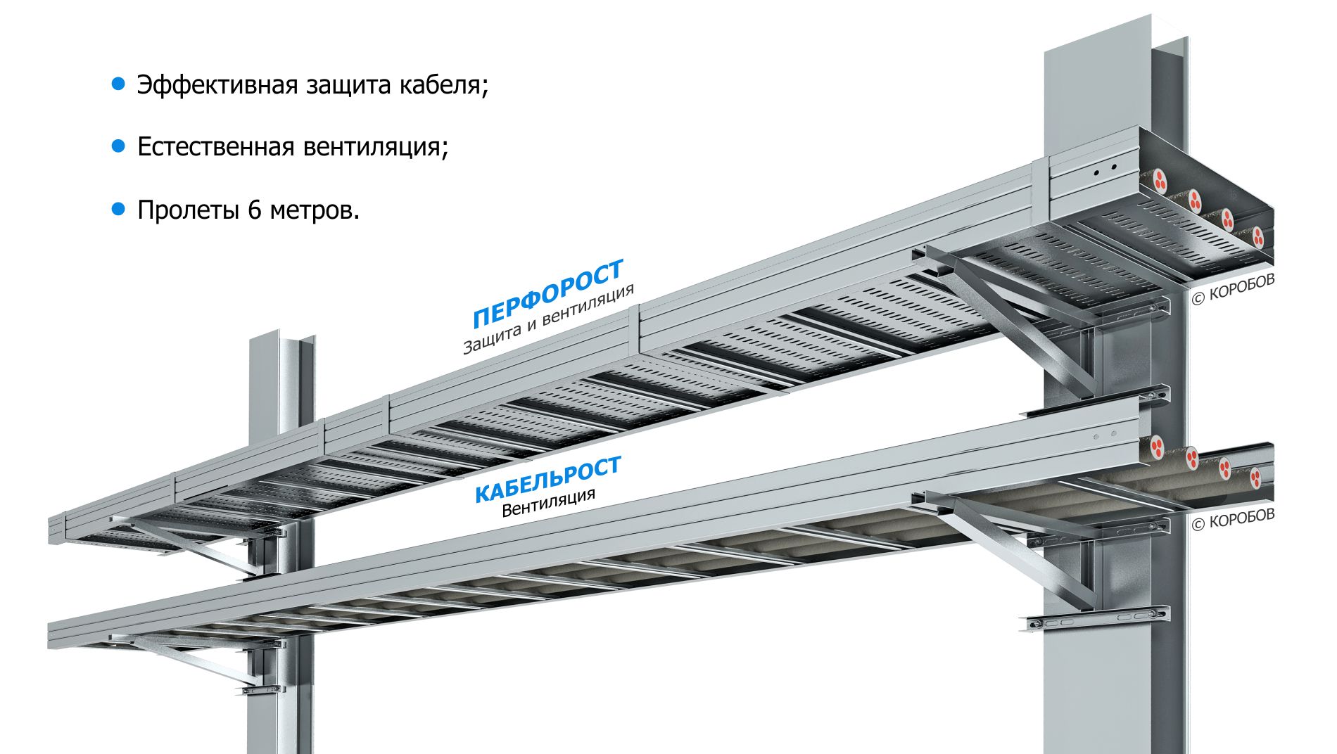 ПЕРФОРОСТ: защищенная кабельная конструкция, снабжённая пространственной рамой с вентиляционными отверстиями. Изделие обеспечивает естественную вентиляцию, согласно "Общих требований" (п. 2.3.14 ПУЭ), и является конструкцией для прокладки кабеля сечением, в т.ч. свыше 25 кв. мм. (п. 2.3.123 ПУЭ). Подробнее -->>