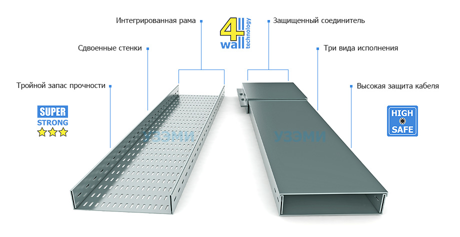 Отдельно отметим, что это единственная кабельная система сертифицированная по семи показателям ГОСТ (нагрузочные характеристики, тип атмосферы, класс стойкости к коррозии, климатическое исполнение, тип размещения, класс не горючести НГ, сейсмостойкость).